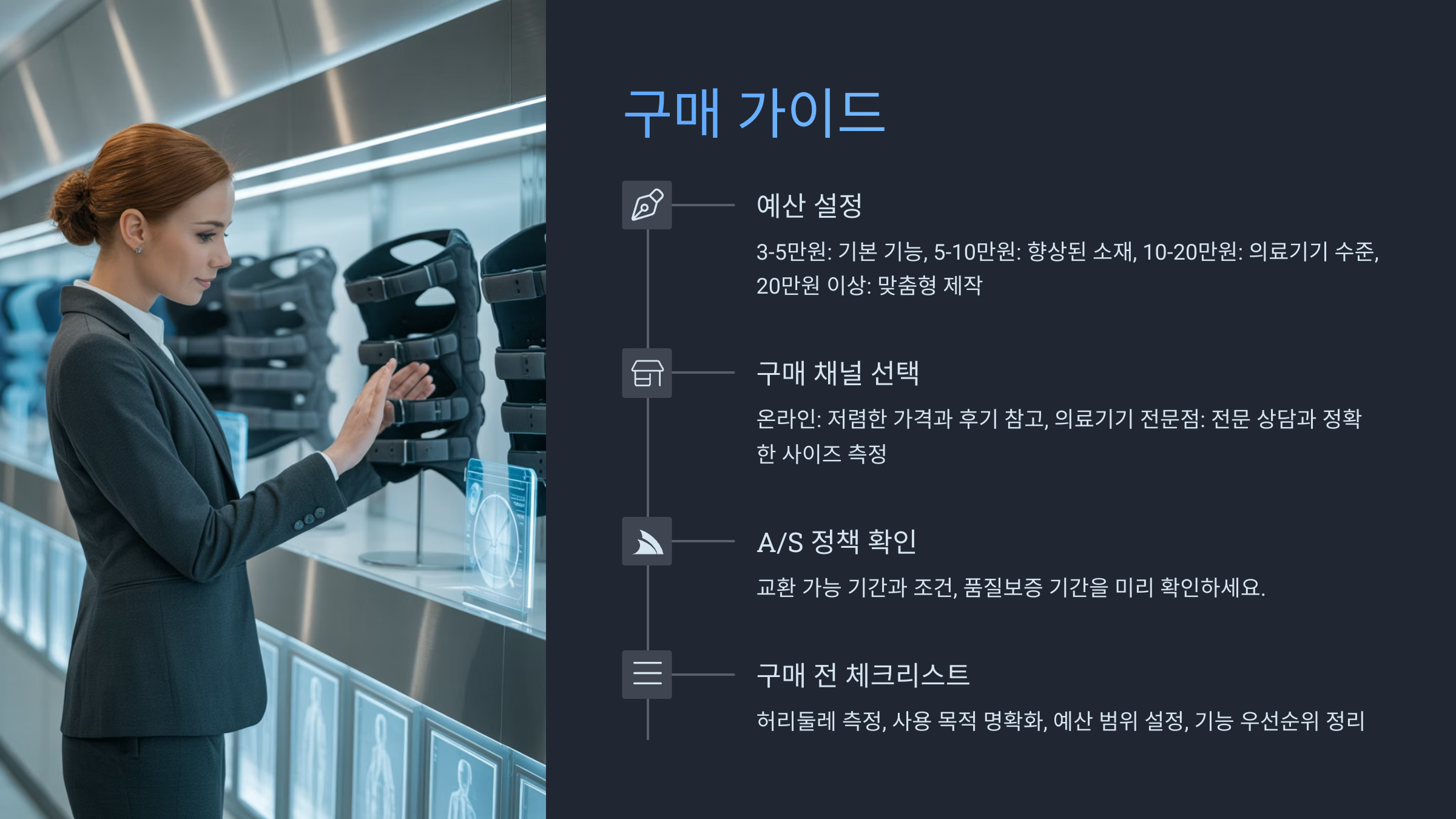 구매 전 체크리스트를 만들어두면 실패할 확률을 줄일 수 있어요. 허리둘레 정확한 측정, 주요 사용 목적 명확화, 예산 범위 설정, 원하는 기능 우선순위 정리, 알레르기 유발 소재 확인 등을 미리 점검해보세요. 또한 가족 중에 비슷한 체형을 가진 사람이 있다면 함께 사용할 수 있는 조절 가능한 제품을 선택하는 것도 경제적이에요. 계절별로 다른 제품이 필요한지도 고려해보세요.