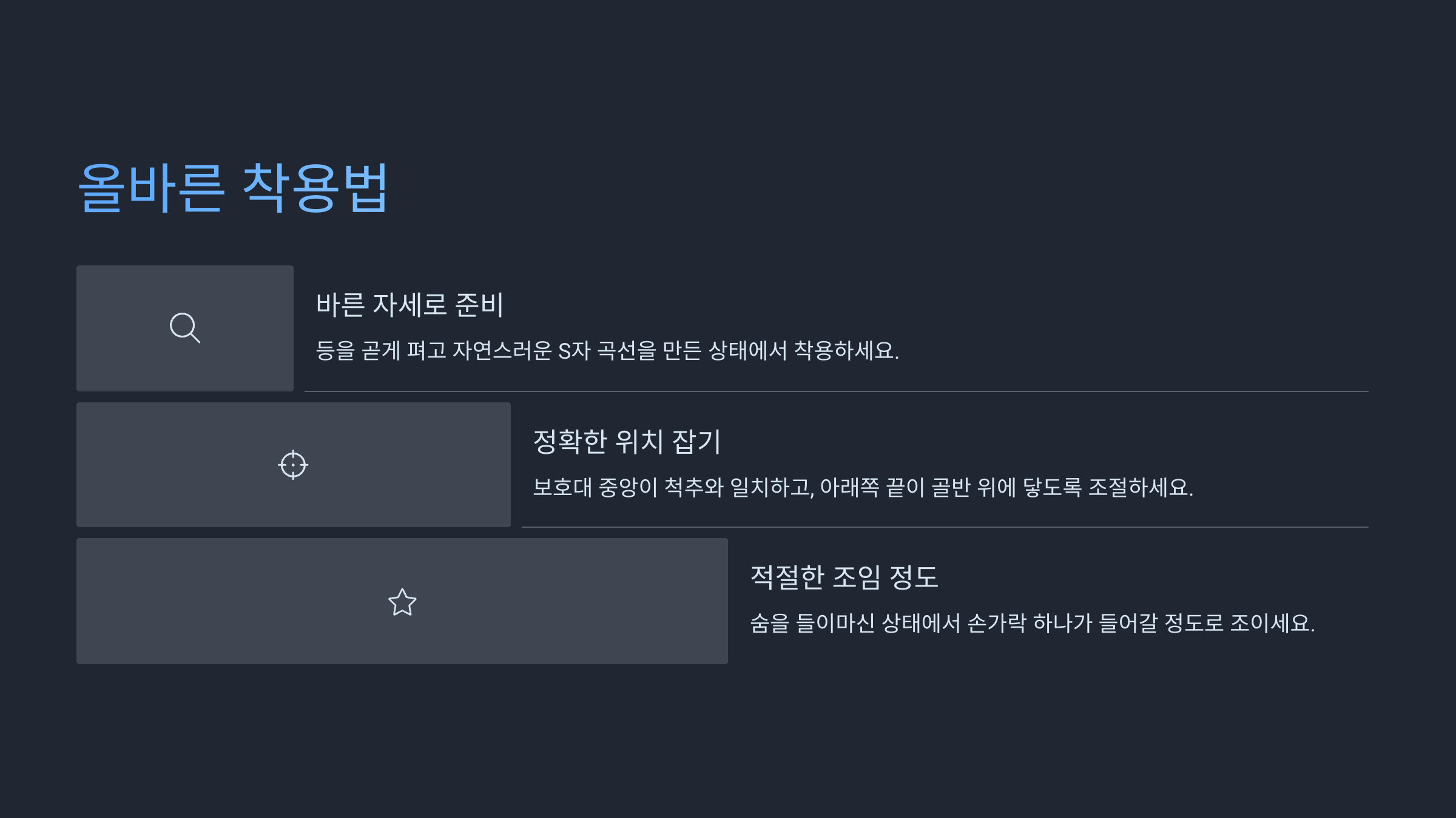 올바른 착용법을 지키면 허리보호대의 효과를 최대한 누릴 수 있어요. 서두르지 말고 천천히 몸에 적응시켜 나가는 게 중요해요! ⏰