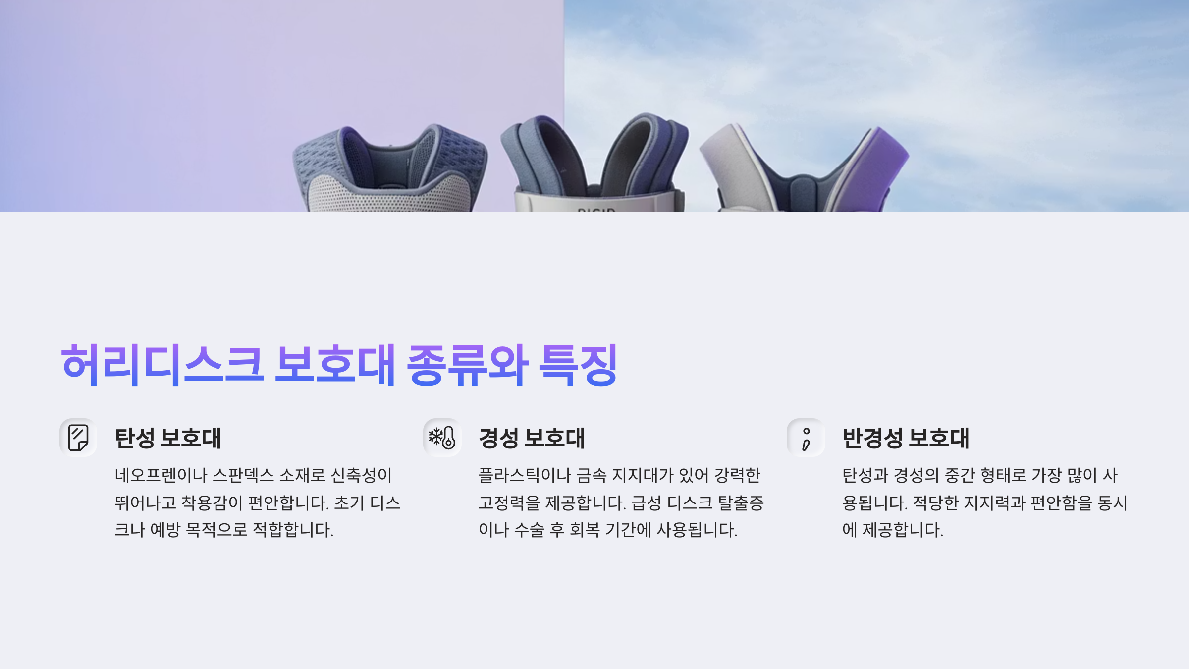보호대 선택시에는 자신의 디스크 상태와 생활패턴을 고려해야 해요. 급성기에는 경성 보호대로 시작해서 점차 반경성, 탄성 순으로 바꿔가는 것이 일반적인 치료 과정이랍니다! 🦴