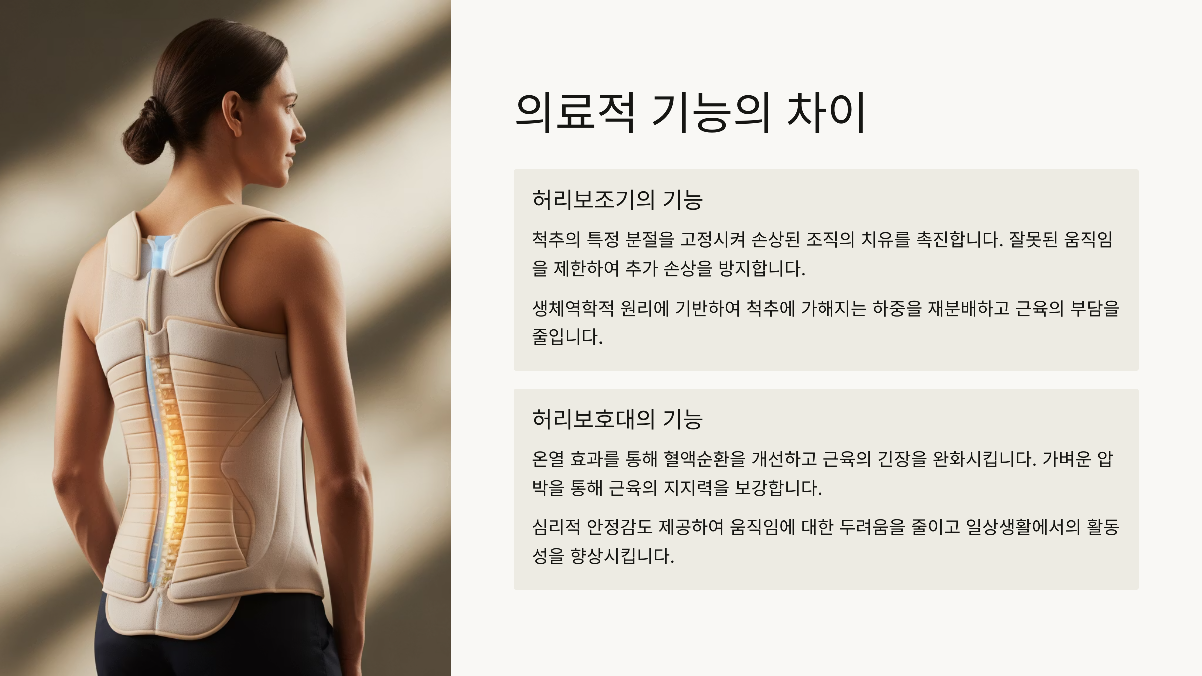 허리보조기와 허리보호대는 비슷해 보이지만 의료적 목적과 기능면에서 명확한 차이가 있어요. 허리보조기는 의료기기로 분류되어 척추 질환의 치료와 재활을 목적으로 하며, 허리보호대는 일반 생활용품으로 예방과 지지를 위해 사용돼요. 이 두 제품의 차이를 정확히 아는 것은 올바른 선택과 효과적인 사용을 위해 매우 중요해요.