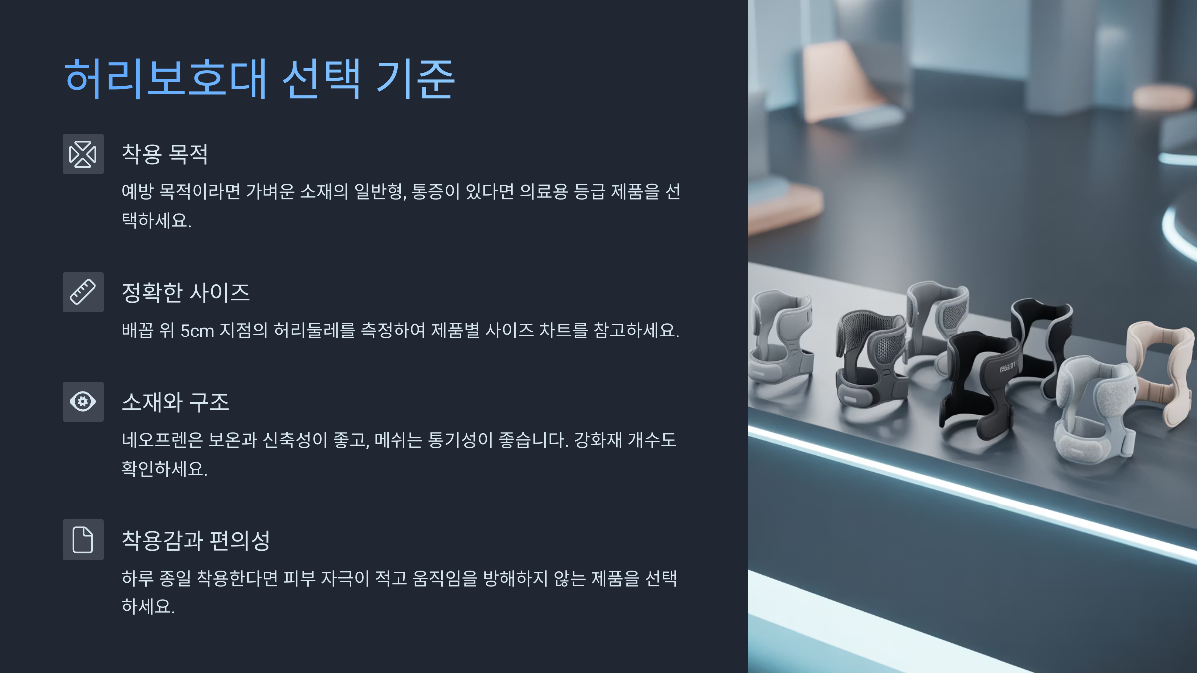 직업과 활동량에 맞는 제품을 선택하면 허리 건강을 효과적으로 보호할 수 있어요. 무조건 비싼 제품보다는 용도에 맞는 제품을 찾는 게 현명해요! 💪